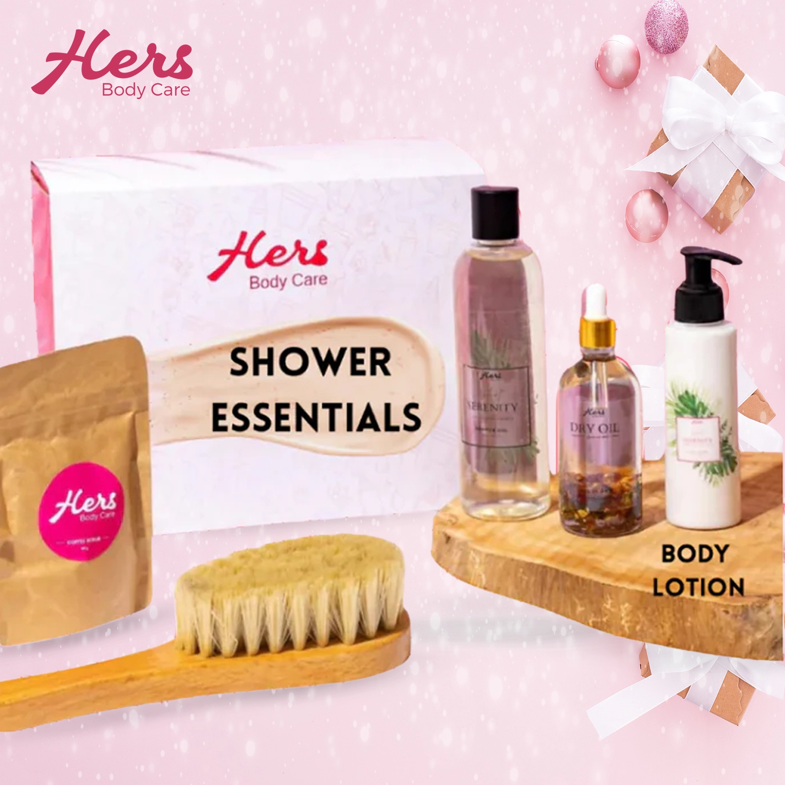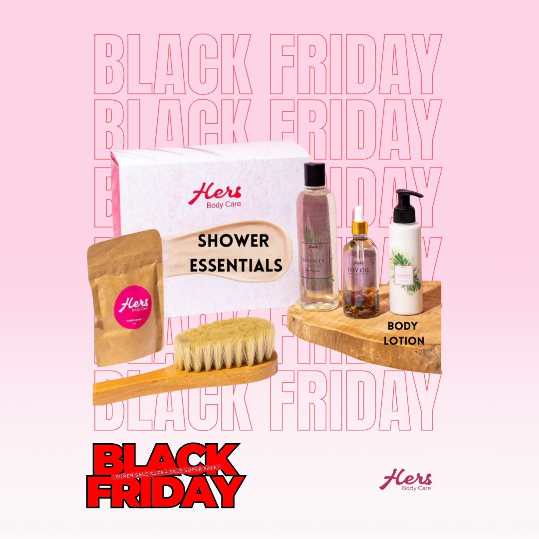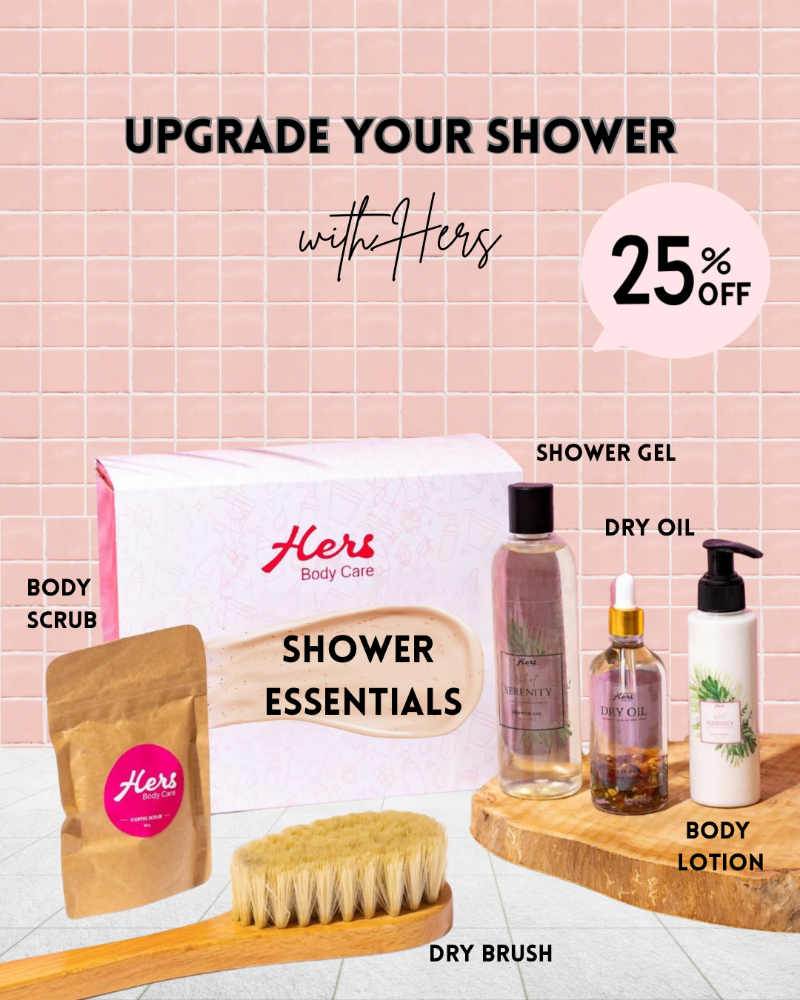 (جل استحمام - لوشن للجسم - مقشر للجسم بالقهوة - زيت جاف - فرشاة جافة)