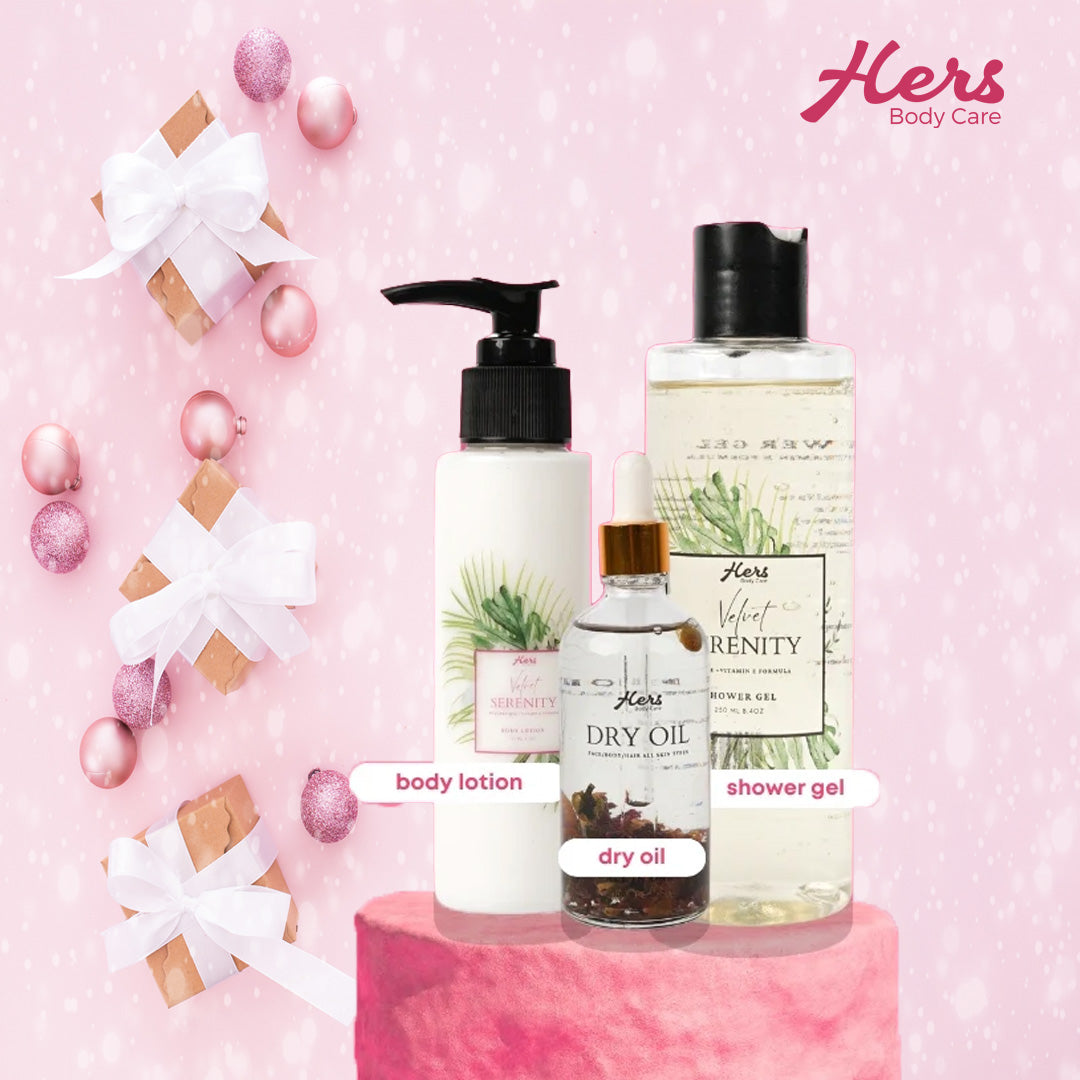 - زيت فيلفيت سيرينيتي الجاف (100 مل): يغذي بشرتك بعمق باستخدام هذا الزيت سريع الامتصاص والذي يمنحها لمسة نهائية مشرقة وهو مثالي لجميع أنواع البشرة.