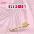 allowing you to massage and remove dry skin easily. This brush offers you dry exfoliation and enhances blood circulation. It eliminates dirt, toxins, and dead skin, lowering muscle tension and providing comfort. Additionally, the brush helps you cleanse your skin pores, removes cellulite, and allows your skin to breathe. It has a long handle that is easy to hold and can be used without it for convenience.